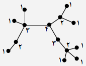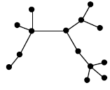 میخواهیم به هر کدام از نقطههای توپر در شکل مقابل٬ یکی از اعداد ۱ تا $k$ را تخصیص دهیم به طوری که هر مسیری که دو نقطه با شمارههای یکسان $i$ را به هم وصل میکند٬ از حداقل یک نقطه با شمارهی بیشتر از $i$ عبور کند. کمترین مقدار $k$ چه قدر است؟
