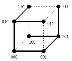 نشان دهید که میتوان یک درخت پر گل $T$ با $2^n$ رأس را در یک فوق مکعب $2^n$ رأسی $Q$ نشاند. یعنی میتوان هر رأس $T$ را در یک رأس $Q$ قرار داد به طوری که دو راس مجاور در $T$ در $Q$ نیز مجاور هم باشند. به شکل مقابل برای $n=3 $ دقت کنید. روشن است که مسئله جوابهای مختلف دارد و یکی کافی است.