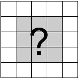 احمد یک مربع $۳ \times ۳$ در جدول $۵ \times ۵$ مقابل انتخاب کرده است. علی قصد دارد با تعدادی پرسش محل این مربع را کشف کند. او در هر نوبت میتواند بهیکی از خانههای جدول اشاره کند و از احمد بپرسد که آیا این خانه در مربع مورد نظر او قرار دارد یا خیر. کمترین تعداد پرسشهای لازم برای آن که علی بتواند مکان مربع احمد را کشف کند چند تاست؟ برای اثبات ادعای خود٬ باید یک روش ارائه دهید و نیز نشان دهید با کمتر از این تعداد سوال نمیتوان همیشه به جواب رسید.
