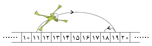 یک قورباغهی پهلوان روی محور اعداد صحیح قرار گرفته است. او در هر جهش میتواند به اندازهی توانی از ۲ به چپ یا راست بپرد. به عنوان مثال او میتواند با دو جهش از ۱۱ به ۱۸ برسد: ابتدا با یک جهش از ۱۱ به ۱۹ و در جهش بعدی از ۱۹ به ۱۸ میپرد. نشان دهید دو عدد صحیح $a$٬ $b$ وجود دارند که او نمیتواند با کمتر از ۱۰۰ جهش از $a$ به $b$ برسد.