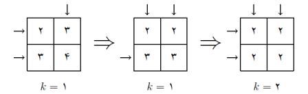 - در هر مرحلهیک زیر مجموعه از سطرها مانند $S$ ، یک زیرمجموعه از ستون ها مانند $T$ و یک عدد $k \gt ۰$ انتخاب میکنیم.سپس عدد تمام خانههای $(i,j) $ که $i \in S$ و $j \in T$ را $k$ واحد کم میکنیم.