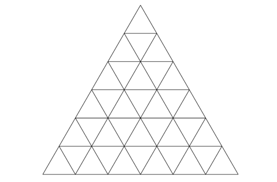 توجه کنید یک مثلّث متساویالاضلاع در صفحه دارای سه مکمّل است. حال یک مثلّث متساویالاضلاع در صفحه در نظر بگیرید. هر ضلع آن را به $n$ بخش برابر تقسیم کنید و با کشیدن خطوط موازی با اضلاع، درون مثلّث را به