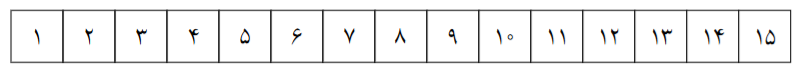 یک زمین بسکتبال به شکل زیر داریم. مایکل بسکتبالیست معروف در ابتدا در خانهی شمارهی $1$ قرار دارد. او میخواهد توپی را که در اختیارش است، به سمت حلقهای که در سمت راست زمین قرار دارد، پرتاب کند. در هر مرحله، او میتواند یا یک خانه به سمت راست (در صورت وجود) حرکت کند، یا توپ را پرتاب کند. به علت افزایش مدافعان تیم حریف در نزدیکی حلقه، اگر از خانهی $i$ به خانهی $i+1$ برود، به احتمال $\frac{1}{15-i}$ ممکن است توپ را از دست بدهد. همچنین اگر از خانهی $i$ اقدام به پرتاب کند، توپ او با احتمال $\frac{i}{15}$ گل میشود. اگر مایکل به شکلی عمل کند که احتمال گل کردن توپش بیشینه باشد، توپ او با چه احتمالی گل میشود؟