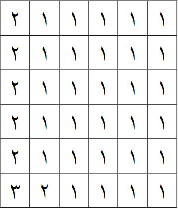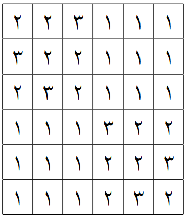1. تعداد کلاس دومی‌ها $6$ باشد: در این حالت، جدول نمی‌تواند هیچ کلاس سومی داشته باشد، زیرا تمام خانه‌ها یا کلاس اولی هستند یا کلاس دومی. بنابراین کلاس دومی‌ها نمی‌توانند وجود داشته باشند، که تناقض است.