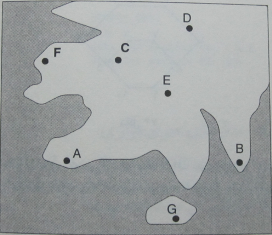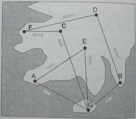 یک موسسهی حمل و نقل در شهر $A$ قرار دارد و هواپیمایی دارد که با استفاده از آن کالاها را بین ۷ شهر $F،E،D،C،B،A$ و $G$ منتقل میکند (شکل زیر).