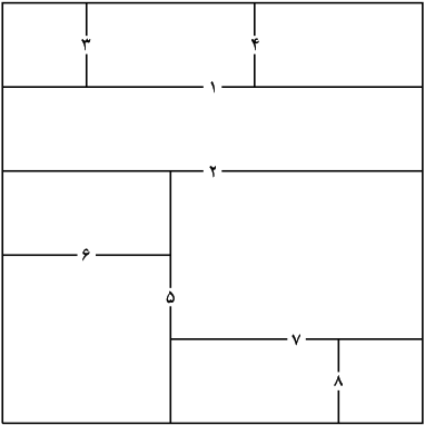 شکل زیر خط کشی حیاط باشگاه برای $n=2$ و اینکه هوشنگ هر چهار ضلع جدول را انتخاب کند را نشان میدهد (عدد روی خطوط نشان دهنده ترتیب کشیده شدن آنهاست).